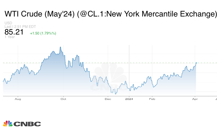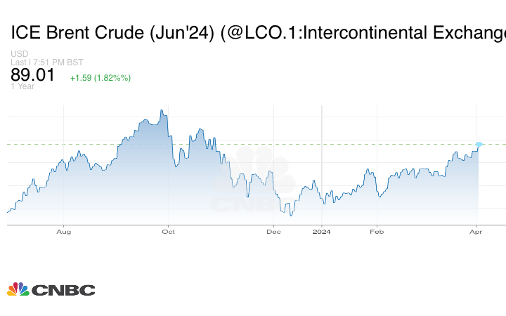 يتم تداول العقود الآجلة لخام برنت إلى حد كبير في فترة زمنية ضيقة تتراوح بين 75 إلى 85 دولاراً للبرميل منذ بداية العام، لكن يبدو أن المخاطر الجيوسياسية المتزايدة والبيانات الاقتصادية القوية قد دفعت إلى الارتفاع.