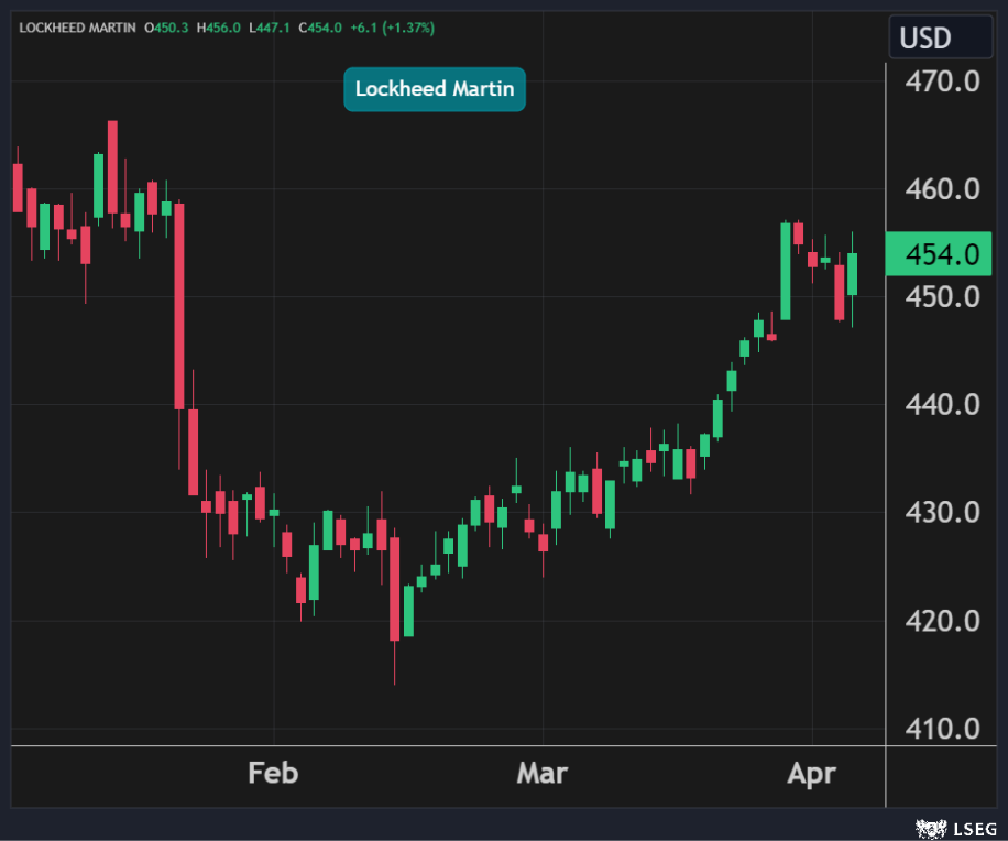 ارتفع سهم Lockheed Martin بنسبة 1.4% في جلسة الخميس معاكساً الاتجاه الهابط لأغلب الأسهم الأميركية ليغلق حول أعلى مستوياته في أكثر من شهرين.
