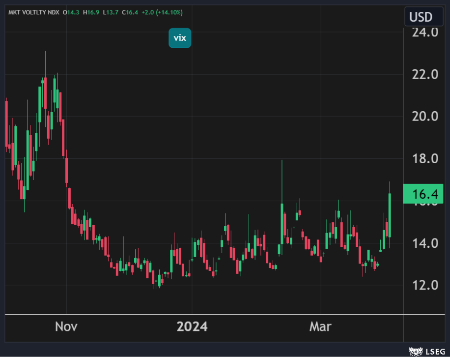 بالمقابل، ارتفع مؤشر التقلبات "الخوف" بأكثر من 14% في جلسة الخميس مسجلاً أعلى إغلاق له في 5 أشهر.