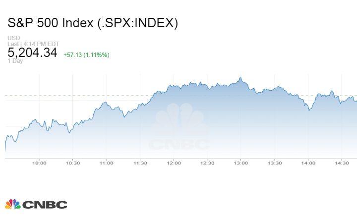 وأغلق مؤشر S&P 500 على ارتفاع 57.13 نقطة بنسبة 1.11% إلى مستوى 5204.34 نقطة.