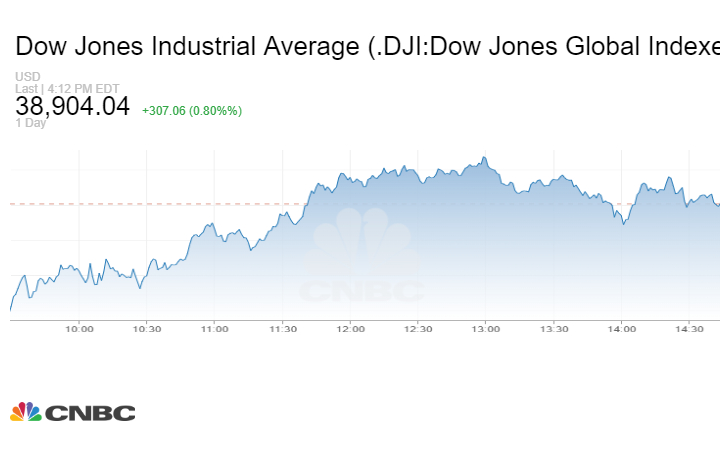 وارتفع مؤشر Dow Jones مع نهاية تعاملات الجمعة 307.06 نقطة بنسبة 0.80% إلى مستوى 38904.04 نقطة.