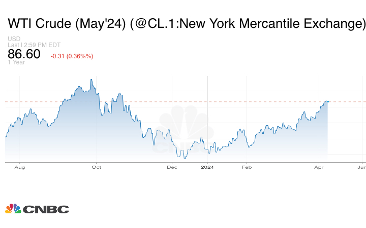 وانخفض غرب تكساس الوسيط لعقد تسليم مايو/ أيار 48 سنتاً، أو 0.55%، ليستقر عند 86.43 دولاراً للبرميل.