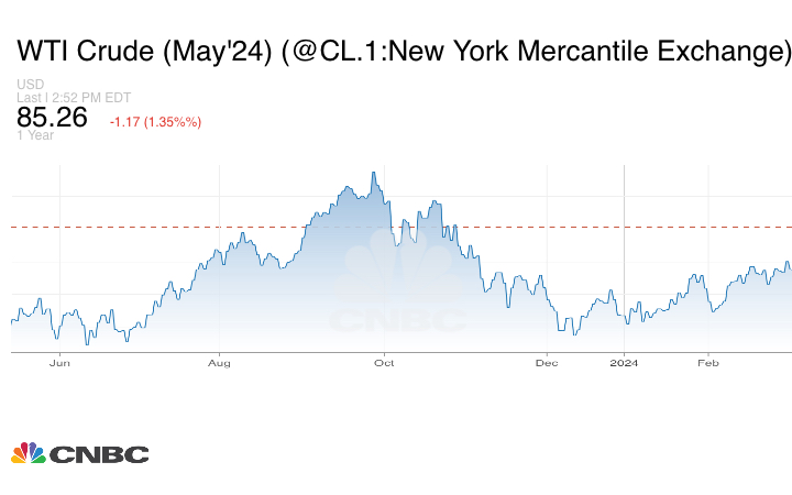 وارتفع خام غرب تكساس الوسيط نحو 19% هذا العام بينما ارتفع برنت 16% مع تصاعد التوترات الجيوسياسية على خلفية ارتفاع الطلب وتخفيضات إنتاج أوبك+ التي من المتوقع أن تدفع السوق إلى عجز في العرض هذا العام. ويتوقع بنك باركليز عجزاً قدره 400 ألف برميل يومياً لعام 2024.