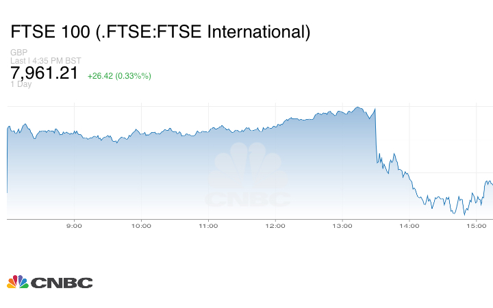 وصعد مؤشر FTSE البريطاني بنحو 0.33%. وأنهى مؤشر DAX الألماني يوم التداول على ارتفاع بنحو 0.11%، فيما استقر مؤشر CAC الفرنسي على استقرار.