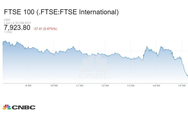 وأغلق مؤشر FTSE 100 البريطاني الجلسة على خسائر 37.41 نقطة أو بنسبة 0.47% إلى مستوى 7923.80 نقطة.