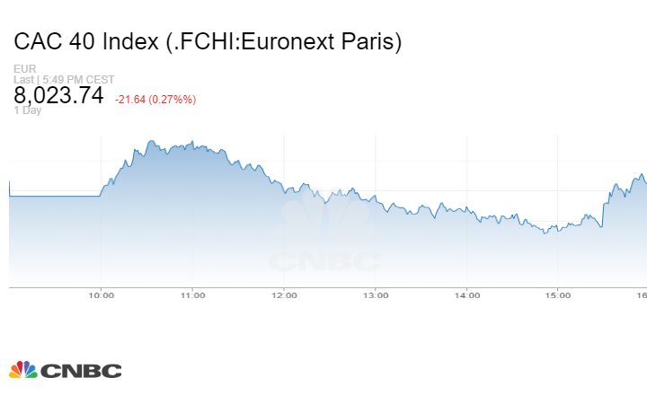 وهبط مؤشر CAC 40 الفرنسي 21.64 نقطة أو بنسبة 0.27% إلى مستوى 8023.74 نقطة.