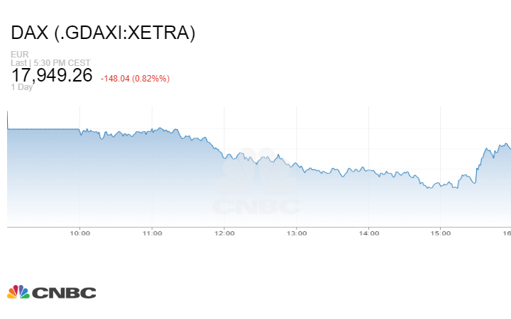 وانخفض مؤشر DAX الألماني 148.04 نقطة أو بنسبة 0.82% عند الإغلاق إلى مستوى 17949.26 نقطة.