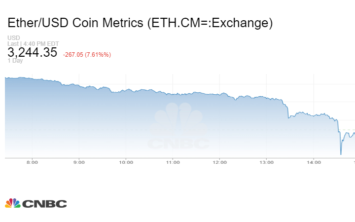 كما هبط سعر عملة إيثر المشفرة 267 دولاراً بنسبة 7.61% خلال آخر 24 ساعة، إلى مستوى 3244.35 دولار.