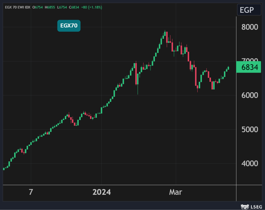 وارتفع المؤشر الثلاثيني بنسبة 0.9% بدعم من مكاسب سهمي طلعت مصطفى والتجاري الدولي بنسبة 2.5% و0.1% على التوالي.