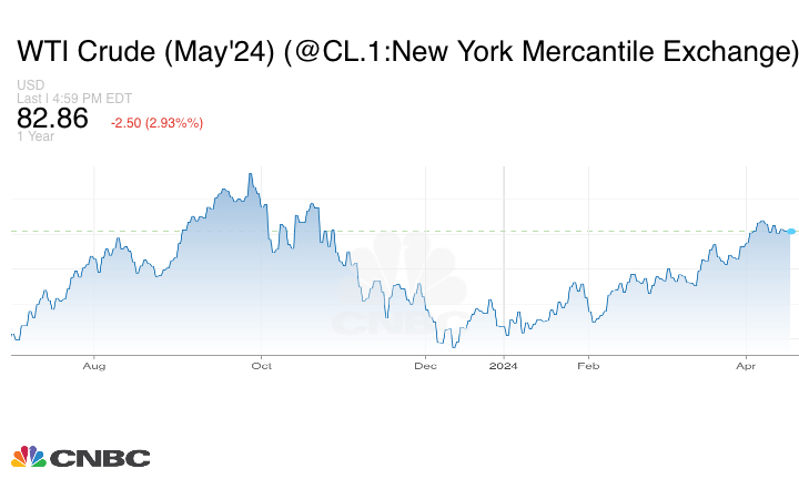 بينما هبطت العقود الآجلة للخام الأميركي تسليم مايو/ أيار 2.67 دولار، أو 3.1%، إلى 82.69 دولار للبرميل، وهو أكبر هبوط لكلا الخامين منذ 20 مارس/ آذار.