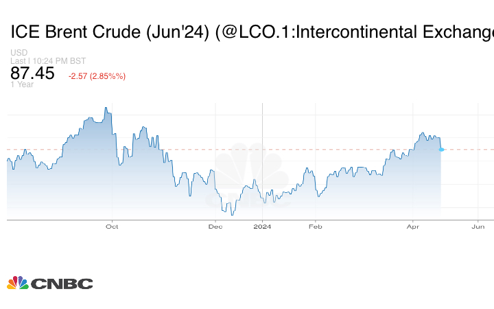 وتتراجع أسعار النفط منذ بداية الأسبوع، إذ ضغطت أوضاع اقتصادية غير مواتية على معنويات المستثمرين، مما حد من مكاسبه الناجمة عن التوتر الجيوسياسي وسط ترقب لكيفية رد إسرائيل على الهجوم الذي شنته إيران عليها مطلع الأسبوع.