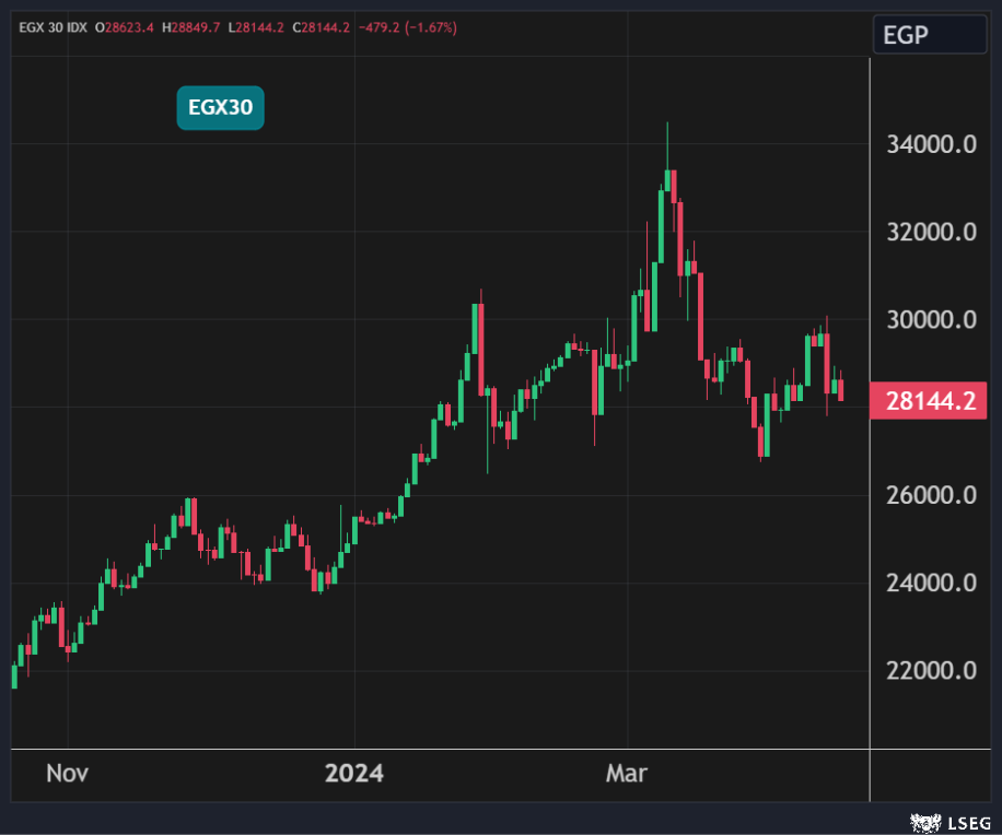 وتراجع المؤشر الثلاثيني بنسبة 1.7% ليغلق عند أدنى مستوياته في أسبوع بضغط من انخفاض سهمي الشرقية للدخان وطلعت مصطفى بنسبة 2.5% و2.6% على التوالي.
