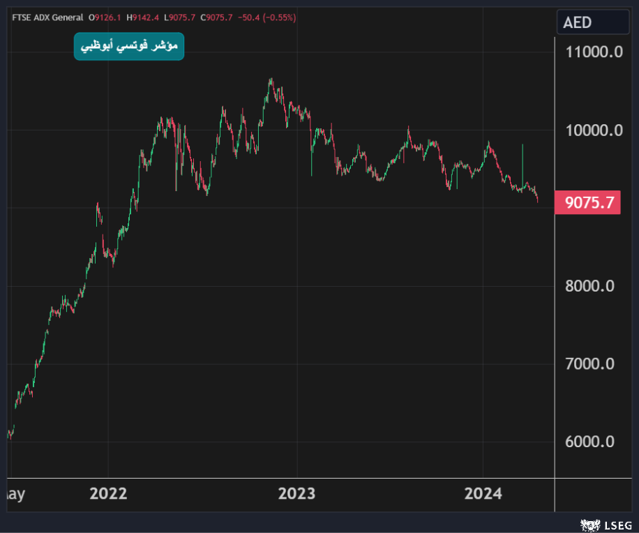 كما تراجع مؤشر فوتسي أبوظبي بنحو 0.6% ليسجل أدنى إغلاق له في أكثر من عامين بضغط من انخفاض سهمي أبوظبي الأول وألفا ظبي بنسبة 1.3% و5% على التوالي.
