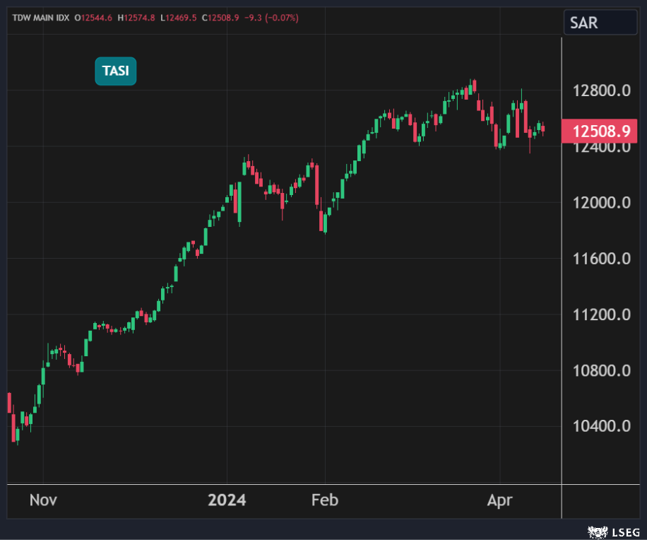تماسك مؤشر السوق الرئيسية فوق مستويات 12500 نقطة بعد انخفاضه بأقل من 0.1% في جلسة الإثنين وسط سيولة بلغت 8.9 مليار ريال ومع تراجع 148 سهماً من أصل 234 شركة مدرجة.