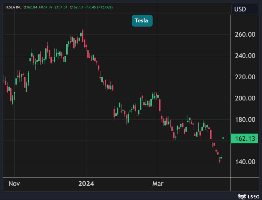 وجاءت هذه المكاسب بعد أن طغت خطط صانع السيارات الكهربائية لتعزيز الإنتاج وطرح نماذج أكثر بأسعار معقولة على نتائجها الفصلية الضعيفة.