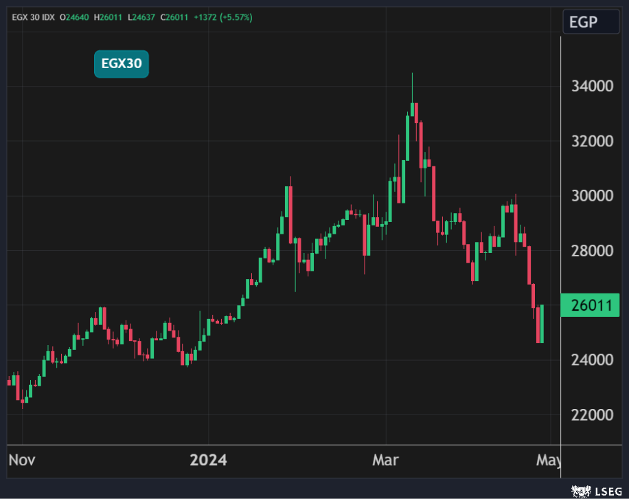 وقفز المؤشر الثلاثيني بنسبة 5.6% محققاً أعلى مكاسب يومية منذ مارس 2020 وسط ارتفاع جماعي لأغلب الأسهم وفي مقدمتها سهمي التجاري الدولي وطلعت مصطفى بنسبة 13% و6% على التوالي.