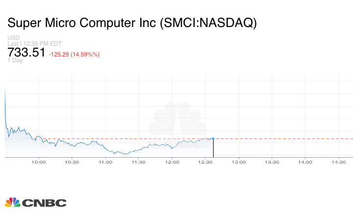 هبط سهم شركة Super Micro صانعة خوادم الذكاء الاصطناعي بنسبة 18% صباح الأربعاء بعد أن رفعت شركة الخادم توجيهاتها العليا، لكنها أعلنت عن إيرادات الربع الثالث التي جاءت أقل من التقديرات قليلاً.