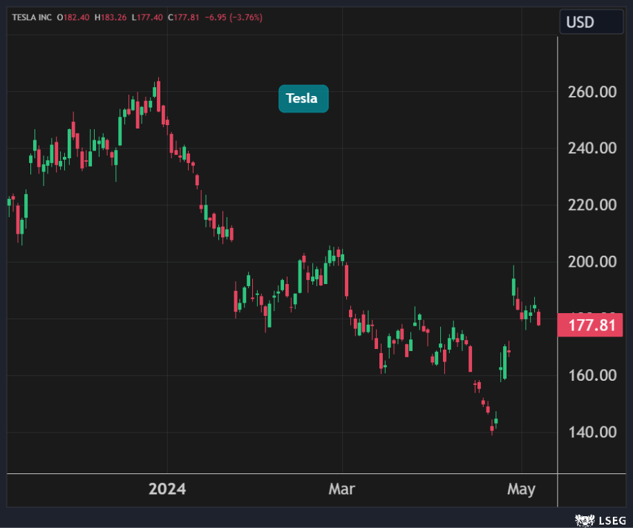 تراجع سهم Tesla بنحو 4% في جلسة الثلاثاء لتفقد الشركة 22 مليار دولار من قيمتها السوقية في يوم واحد.