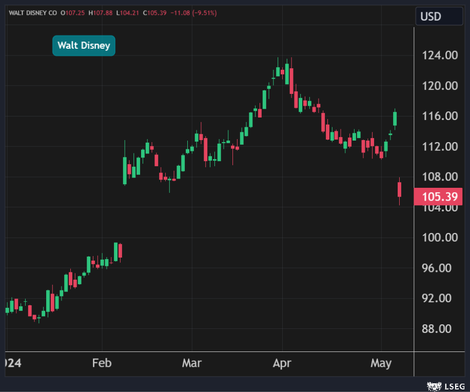 انخفض سهم Walt Disney بنسبة 10% في جلسة الثلاثاء إلى أدنى مستوياته في 3 أشهر، لتفقد الشركة 20 مليار دولار من قيمتها السوقية في يوم واحد.