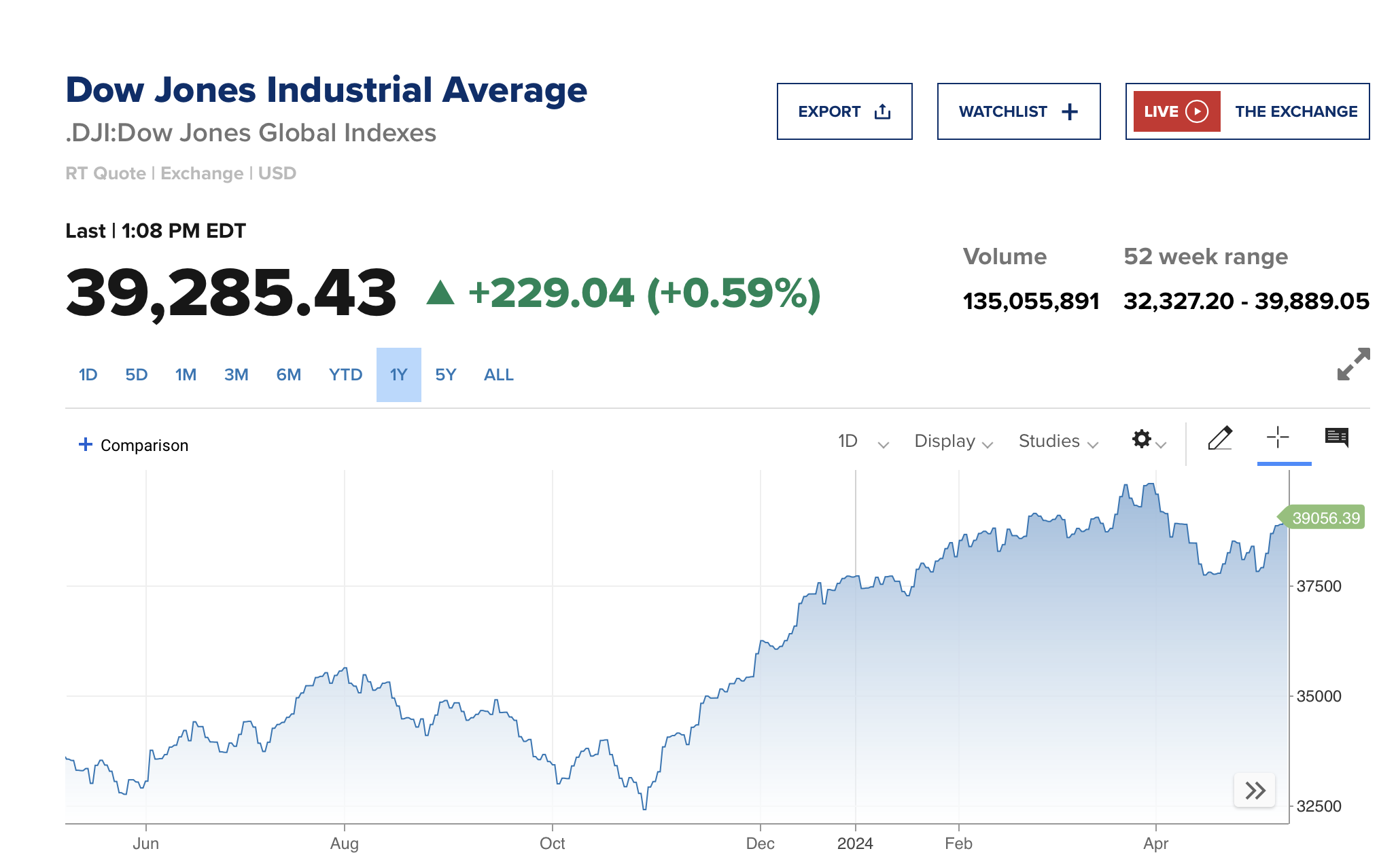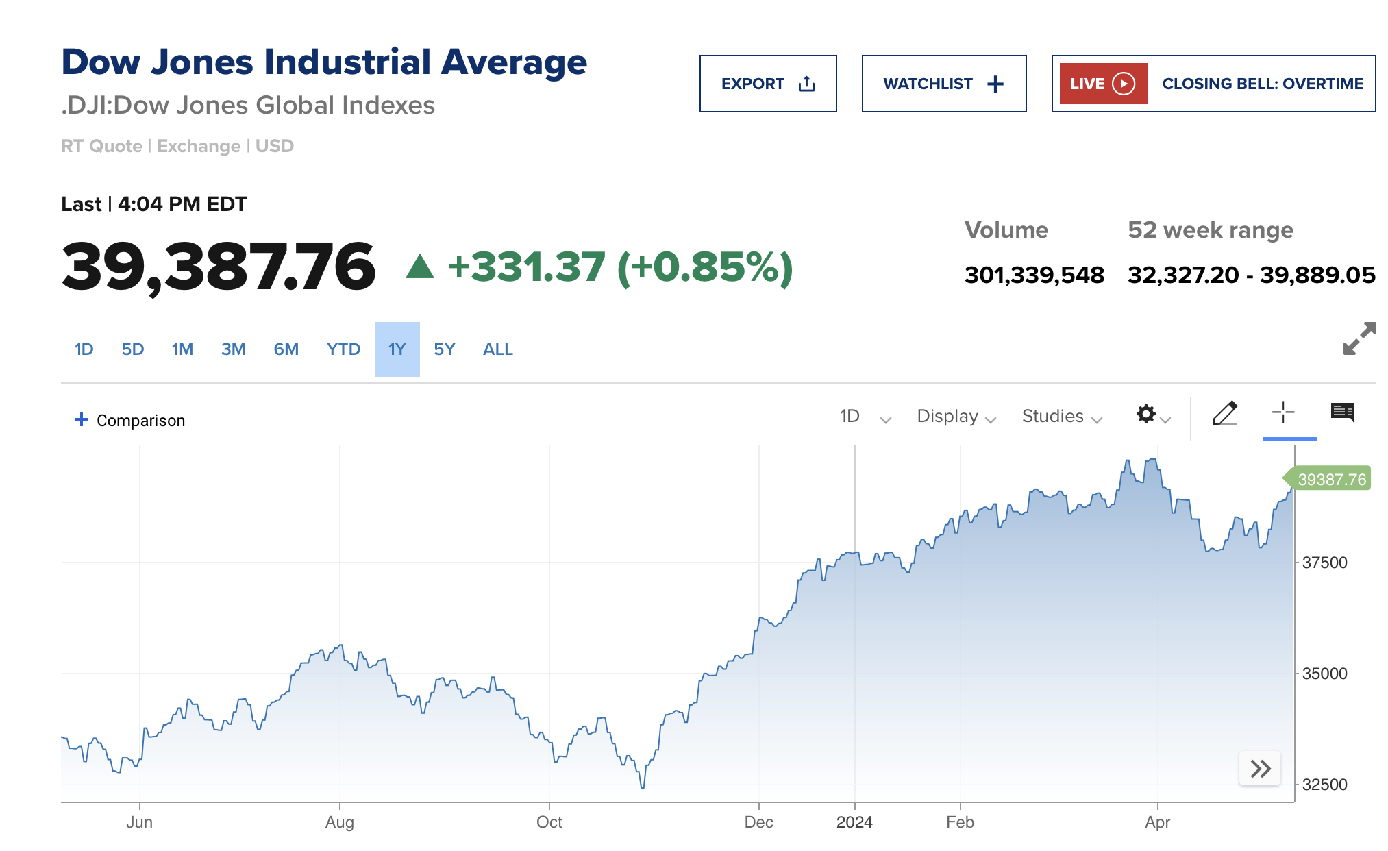 مؤشر داو جونز الصناعي يضيف 221 نقطة، أو 0.6% بعد ساعات من التداول، مما يضع المؤشر المكون من 30 سهماً على المسار الصحيح لليوم الإيجابي السابع على التوالي لأطول سلسلة مكاسب في عام 2024.