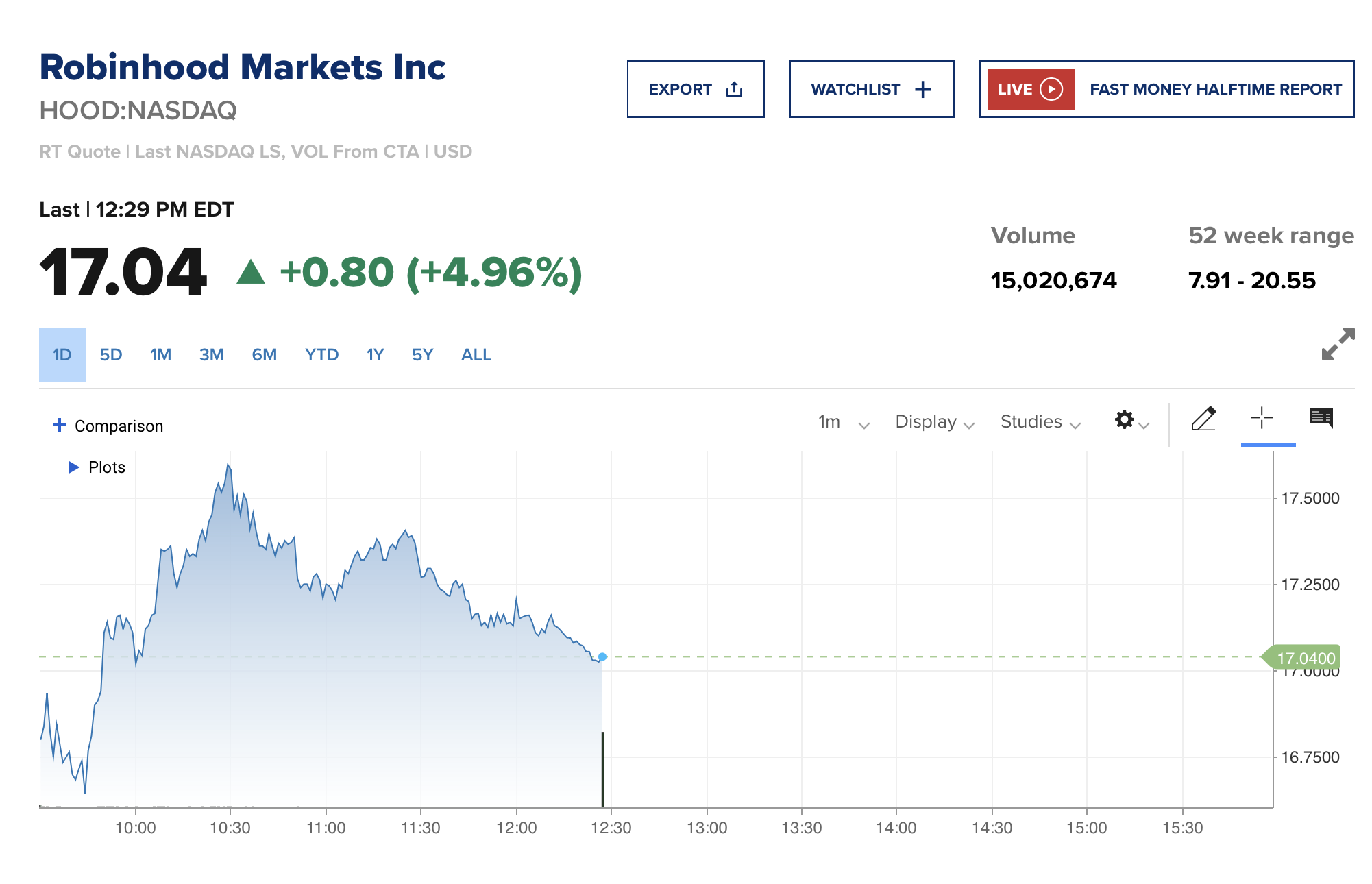 وارتفعت أسهم شركة التواصل الاجتماعي 9%، فيما ارتفع سهم الوساطة 8%. شهدت كلتا الشركتين نشاطاً كثيفاً للمستخدمين خلال عصر أسهم الميمات لعام 2021، على الرغم من أنه لم يكن لدى أي منهما أسهم متداولة علناً عندما انطلقت GameStop لأول مرة.