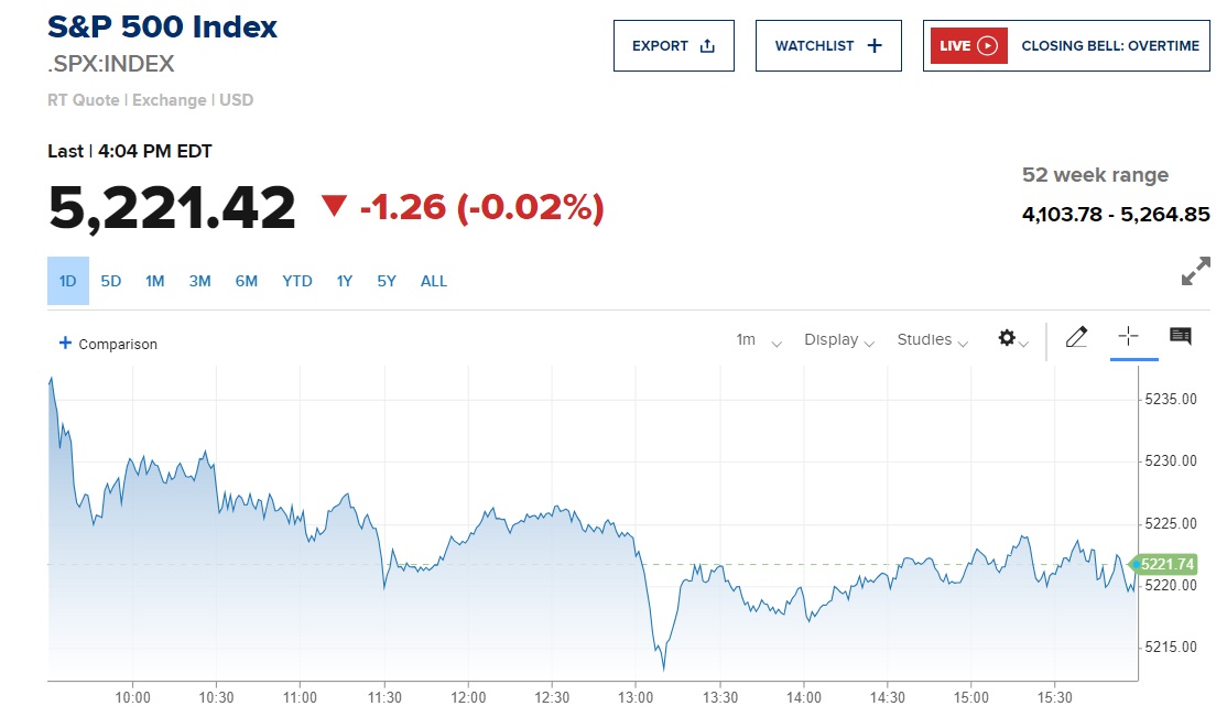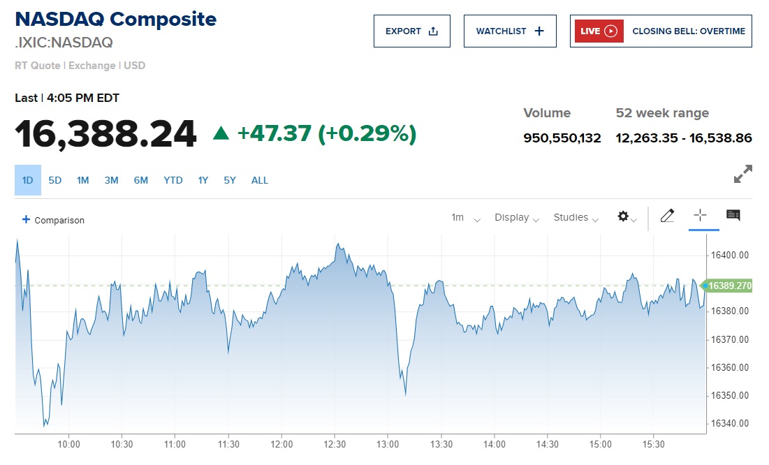 كما سجل مؤشر S&P 500 عند الإغلاق بنحو  بنسبة 0.02% إلى مستوى 39,431.51 نقطة. بينما استقر مؤشر Nasdaq 100 بنهاية التعاملات مرتفعاً بنسبة 0.29% إلى مستوى 16,388.24 نقطة.