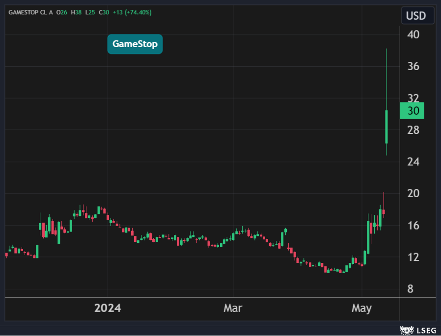 قفز سهم GameStop بنسبة 74% في جلسة الإثنين محققاً أعلى مكاسب يومية له في أكثر من 3 سنوات رغم عدم وجود أخبار عن الشركة.