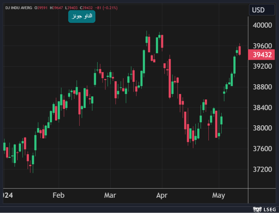 تراجع مؤشر الداو جونز بنسبة 0.2% أي ما يعادل 81 نقطة في جلسة الإثنين ليهبط من أعلى مستوياته في شهر ونصف وبعد 8 جلسات متتالية من الارتفاعات ليُنهي أطول سلسلة مكاسب يومية حدثت في العام الحالي.