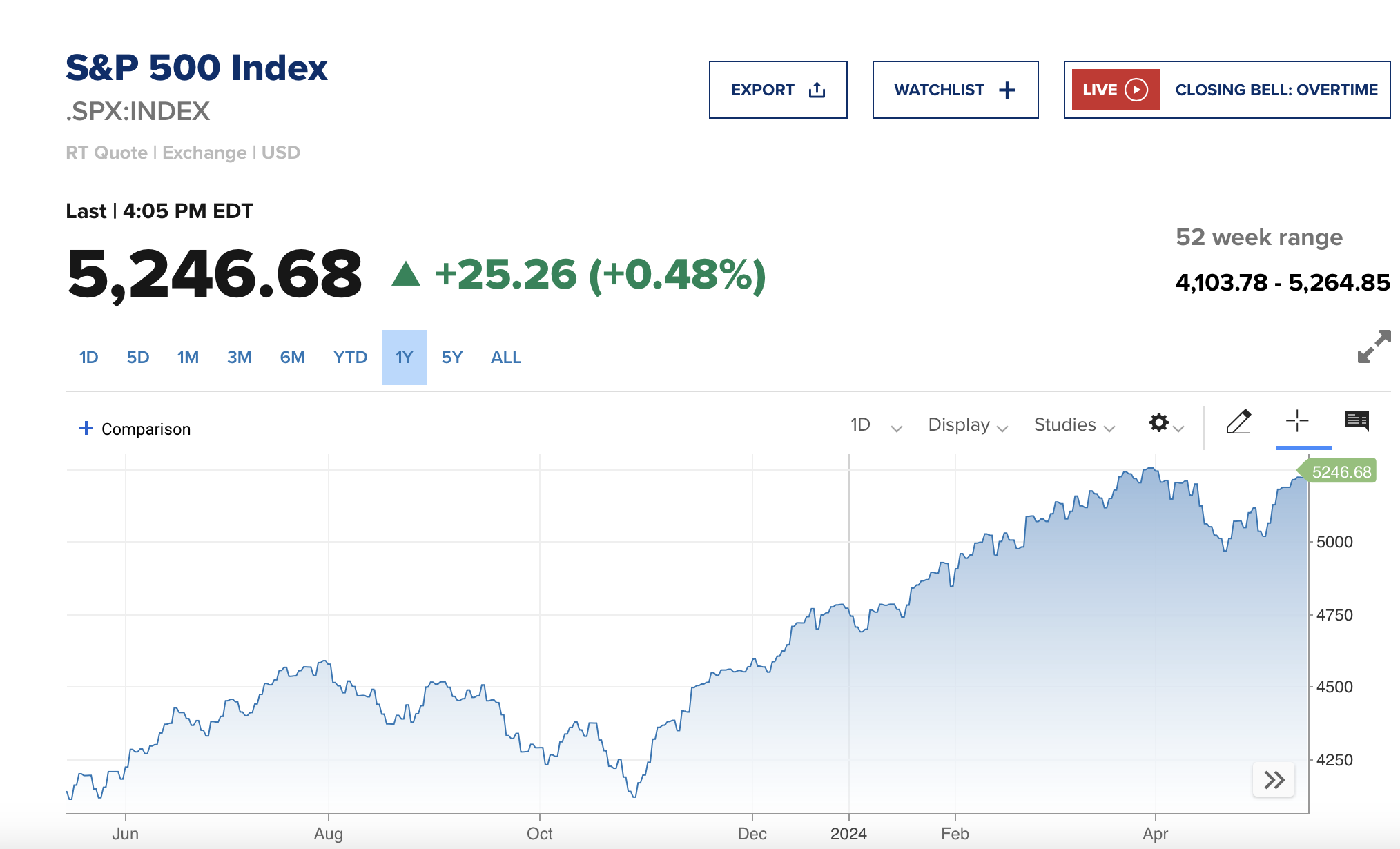 مؤشر S&P 500 ارتفع 0.48% إلى 5,246.63 نقطة.