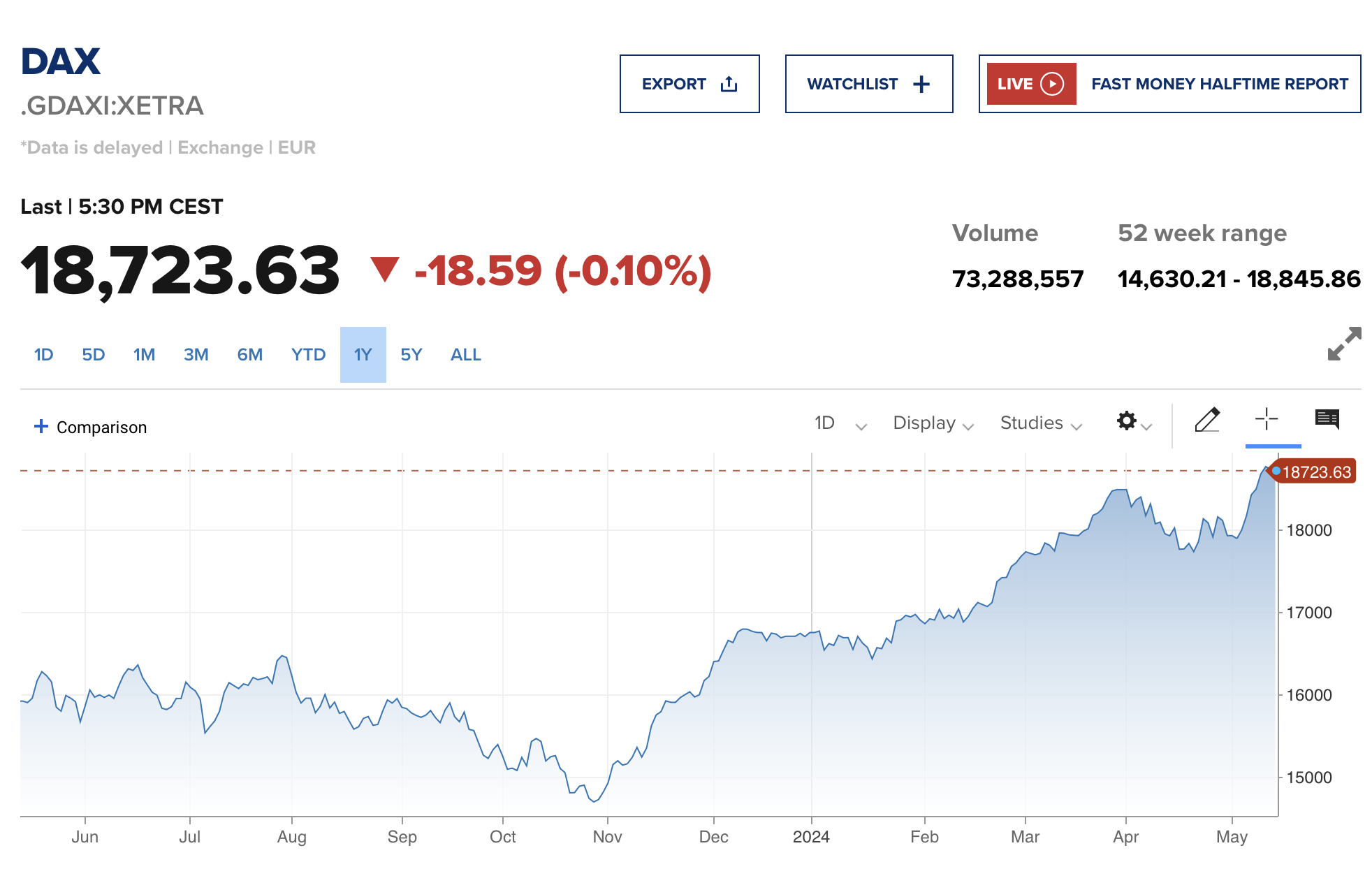 أغلق مؤشر DAX الألماني على انخفاض بنحو 0.10% ومؤشر CAC الفرنسي ياغلق على مكاسب بنحو 0.20% وصعد مؤشر FTSE البريطاني بنحو 0.16%.