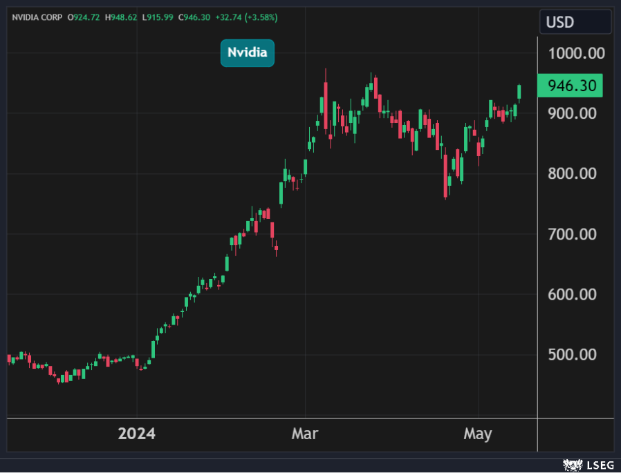 ارتفع سهم Nvidia بنحو 4% في جلسة الأربعاء ليغلق عند أعلى مستوياته في 7 أسابيع لتضيف الشركة 82 مليار دولار إلى قيمتها السوقية في يوم واحد.