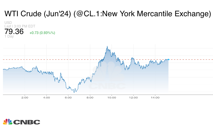 وارتفعت العقود الآجلة للخام الأميركي 60 سنتاً أو 0.67% إلى 79.23 دولار أميركي للبرميل عند التسوية.