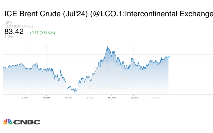 وكسبت العقود الآجلة لخام برنت 52 سنتاً أو 0.63% إلى 83.27 دولار للبرميل عند التسوية.