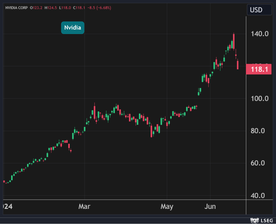 وسيطرت عمليات جني الأرباح على أسهم شركة رقائق الذكاء الاصطناعي بعد الارتفاع السريع الأسبوع الماضي الذي جعلها الشركة الأكثر قيمة في العالم.