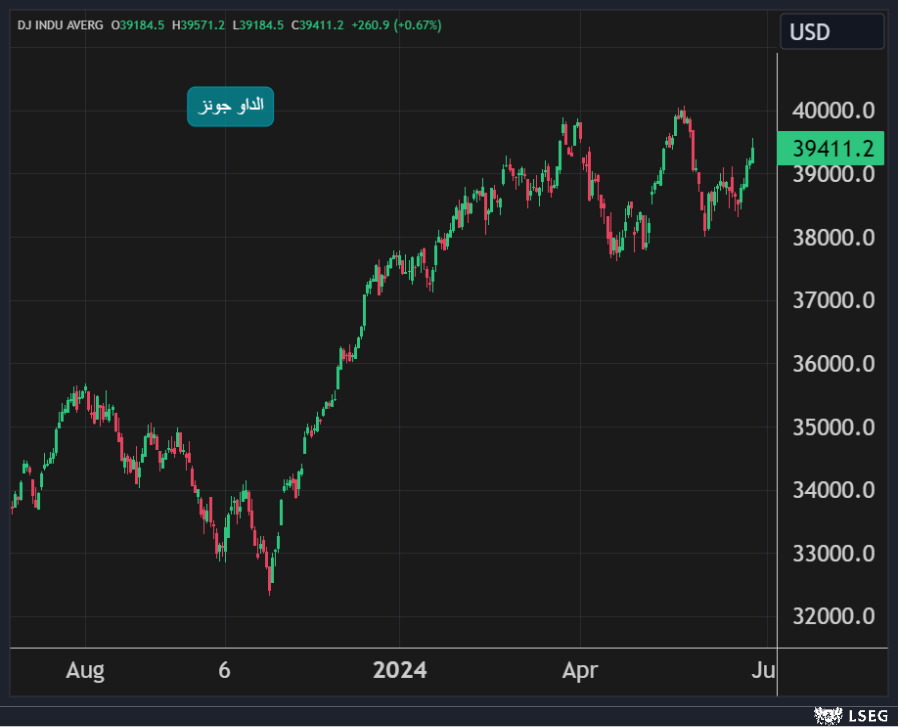 ارتفع مؤشر الداو جونز بنحو 0.7% أو ما يعادل 260 نقطة في جلسة الإثنين مسجلاً خامس مكاسب يومية على التوالي ليغلق عند أعلى مستوياته في شهر.