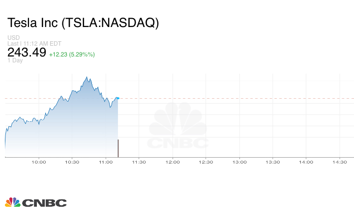 وكان ارتفع السهم في تعاملات ما قبل الافتتاح بنسبة 2.59% إلى 237.3 دولار، بعدما أغلق جلسة الثلاثاء مرتفعاً 10.2% عند 231.26 دولار.