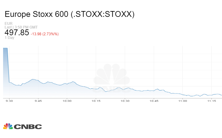 انخفض مؤشر Stoxx 600 الأوروبي 13.98 نقطة أو بنسبة 2.73% إلى مستوى 497.85 نقطة في نهاية التعاملات، وهو أسوأ يوم له منذ ديسمبر/ كانون الأول 2022 وفقًا لبيانات LSEG. وأظهرت البيانات أن انخفاض المؤشر إلى ما دون مستوى 500 نقطة هو الأول من نوعه منذ أبريل/ نيسان.