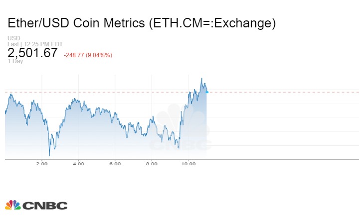 وانخفضت إيثر 21% إلى أدنى مستوى لها منذ يناير/ كانون الثاني.