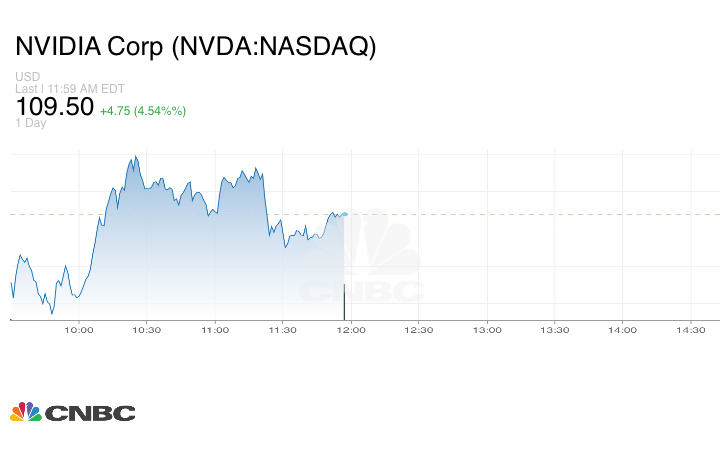 ارتفعت أسهم Nvidia بنسبة 5% الأمر الذي ساعد مؤشر Nasdaq على الصعود. وكانت أسهم شركات التكنولوجيا النظيرة مايكروسوفت وأبل مرتفعة بشكل طفيف.
