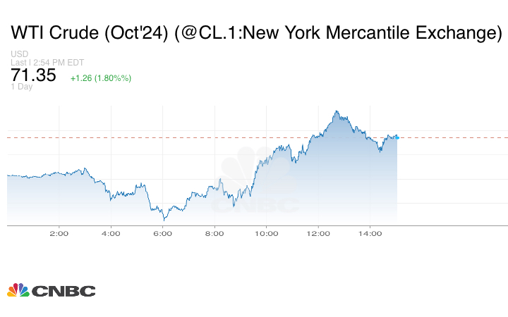 كما صعدت عقود الخام الأميركي 1.10 دولار أو 1.57% إلى 71.19 دولار للبرميل عند التسوية.