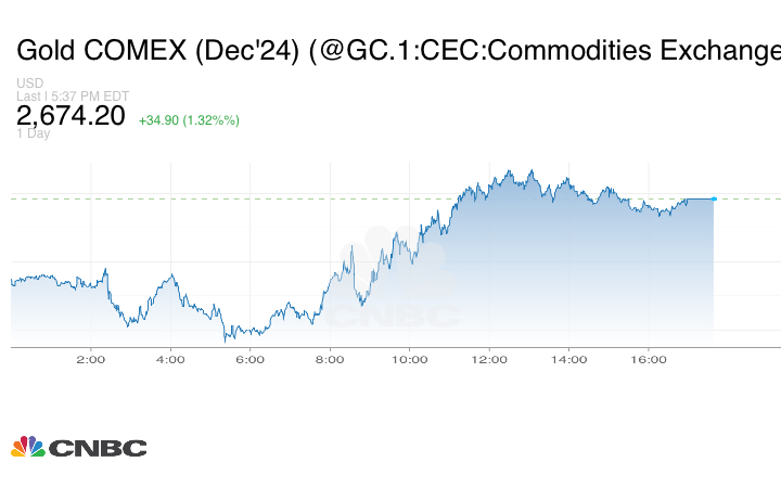 وصعد المعدن الأصفر، الذي يعد أكثر جاذبية لحائزي العملات الأخرى، في المعاملات الفورية 1.1 إلى 2657.62 دولار للأونصة. وارتفعت العقود الأميركية الآجلة للذهب 1.3 % تقريباً إلى 2674.40 دولاراً.