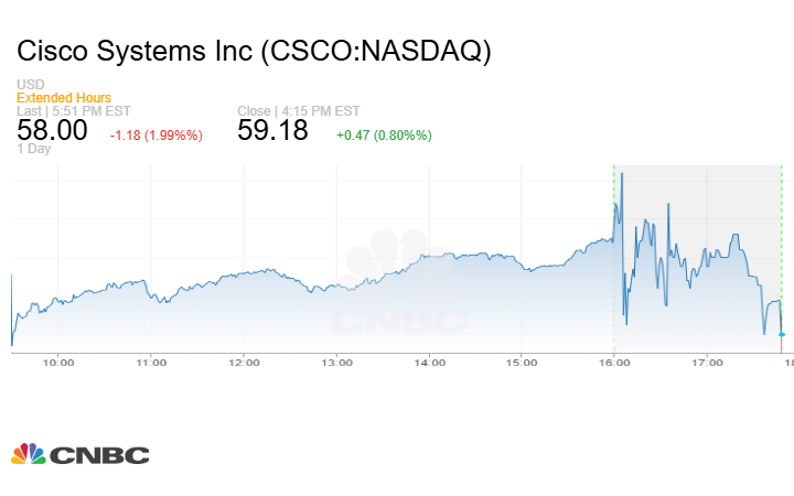 رفعت شركة Cisco توقعاتها للعام بأكمله إلى نطاق بين 3.60 و3.66 دولار للأرباح المعدلة للسهم الواحد وإيرادات بين 55.3 و56.3 مليار دولار، ارتفاعاً من توقعات سابقة بنطاق بين 3.52 و3.58 دولار للأرباح لكل سهم، وبين 55 و56.2 مليار دولار للإيرادات.