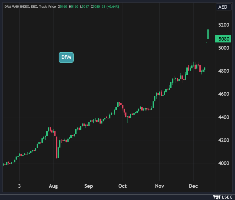 وواصل مؤشر سوق دبي مكاسبه للجلسة الخامسة التوالي مرتفعاً بنسبة 0.6% في يوم الثلاثاء ليغلق عند أعلى مستوياته في 10 سنوات و3 أشهر.