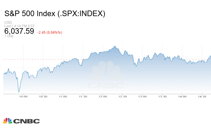 بينما أغلق مؤشر S&P 500 التعاملات على هبوط 2.45 نقطة أو بنسبة 0.04% إلى 6037.59 نقطة.