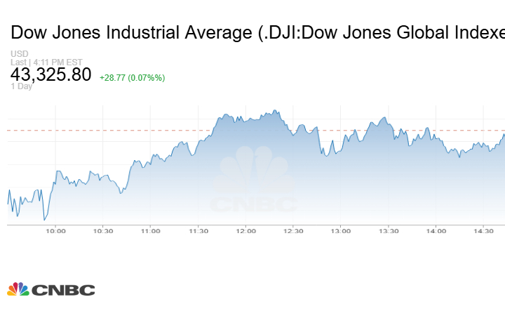 ارتفع مؤشر Dow Jones الصناعي 28.77 نقطة أو بنسبة 0.07% عند إغلاق تعاملات الخميس إلى 43325.80 نقطة.