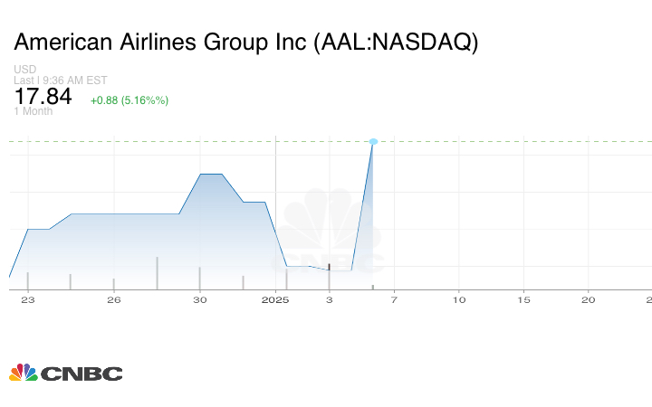 ارتفعت أسهم American Airlines بأكثر من 4% بعد أن قامت TD Cowen بترقية شركة الطيران إلى شراء من تصنيف الاحتفاظ ورفع سعرها المستهدف إلى أعلى مستوى في وول ستريت. ويشير الهدف الجديد إلى ارتفاع بنسبة 47% تقريباَ عن إغلاق يوم الجمعة.