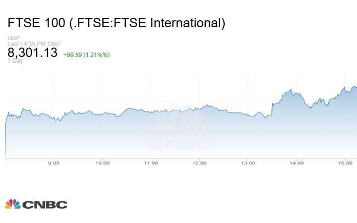 وصعد مؤشر FTSE 100 البريطاني 99.59 نقطة أو بنسبة 1.21% عند الإغلاق إلى مستوى 8301.13 نقطة.