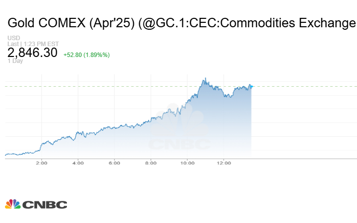 وزادت العقود الأميركية الآجلة للذهب 1.9% إلى 2846.30 دولاراً للأونصة.