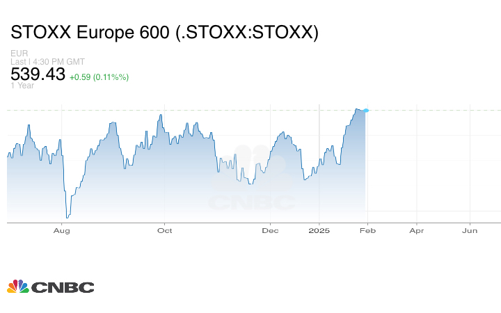 على الرغم من بعض التقلبات في بداية العام، أنهى مؤشر Stoxx 600 شهر يناير بمكاسب شهرية تزيد عن 6% مع ارتفاع الأسهم الأوروبية إثر أسبوع متقلب أثاره نموذج الذكاء الاصطناعي DeepSeek.
