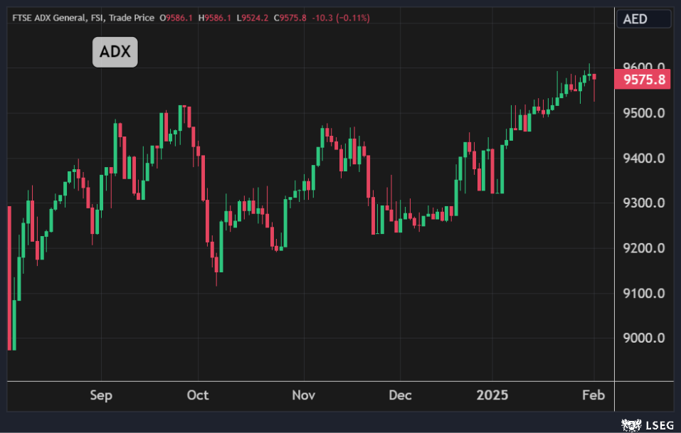 تراجع مؤشر فوتسي أبوظبي بنسبة 0.1% في جلسة الإثنين ليتنازل عن أعلى مستوياته في عام كامل متأثراً بانخفاض سهم أبوظبي التجاري بنسبة 2% ليهبط من ذروة الـ 19 عاماً.